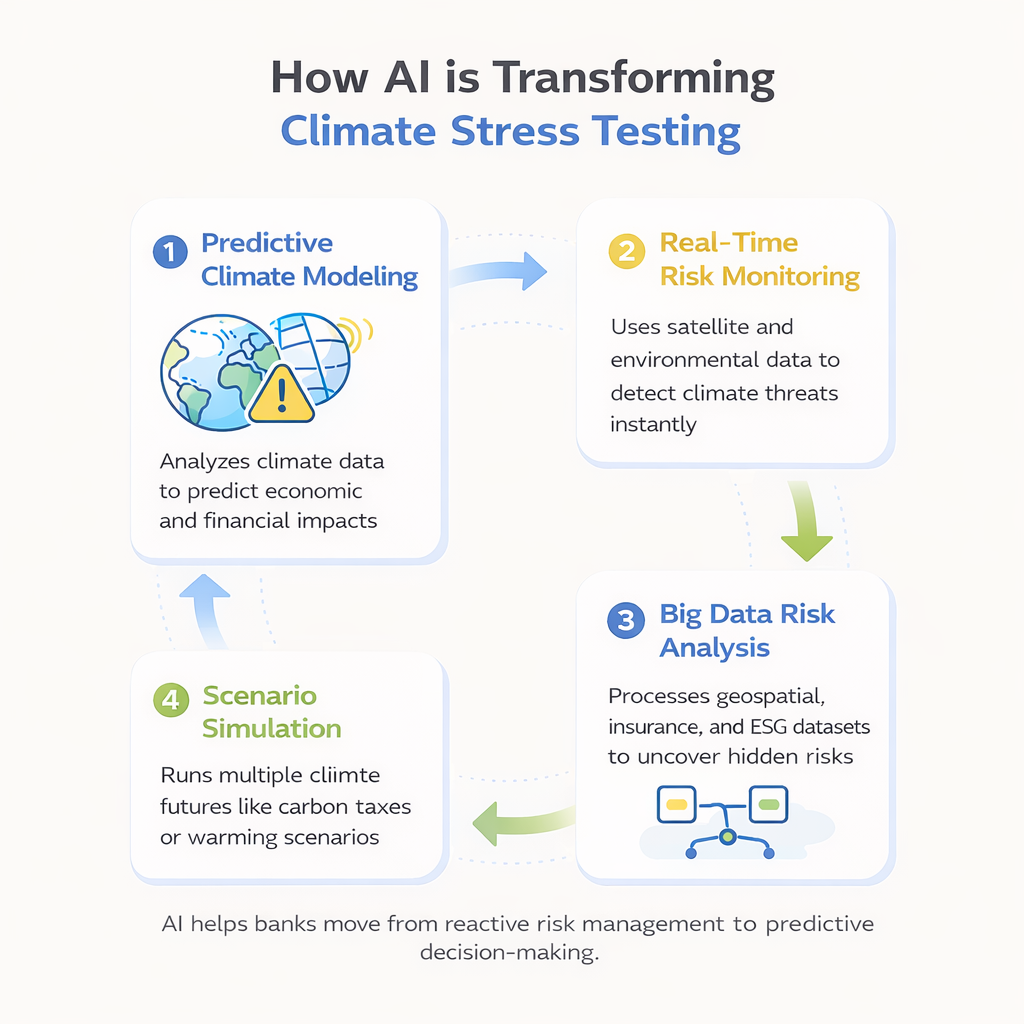 AI-driven climate risk modeling is transforming how banks conduct stress tests and prepare for financial volatility caused by climate change. By incorporating AI-powered predictive analytics, big data processing, and real-time scenario analysis, banks can enhance climate resilience, optimize lending decisions, and support sustainable finance initiatives.