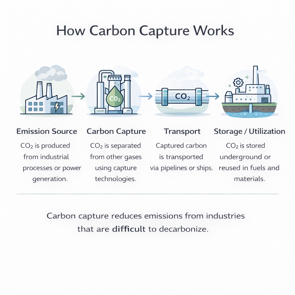 That is where carbon capture technologies play a defining role. They capture CO₂ at its source, such as factories, refineries, or power plants, and either reuse it or store it safely underground.