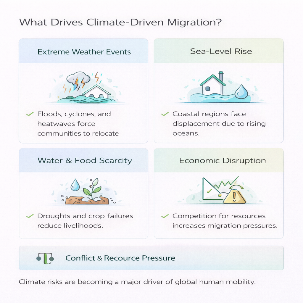 As the planet warms, it’s not just temperatures that are rising; people are moving. Across the globe, millions are being displaced by rising sea levels, crop failures, and extreme heat. This phenomenon, known as climate-driven migration, is no longer a projection; it’s already unfolding. By 2050, the World Bank estimates up to 216 million people could be displaced within their own countries.