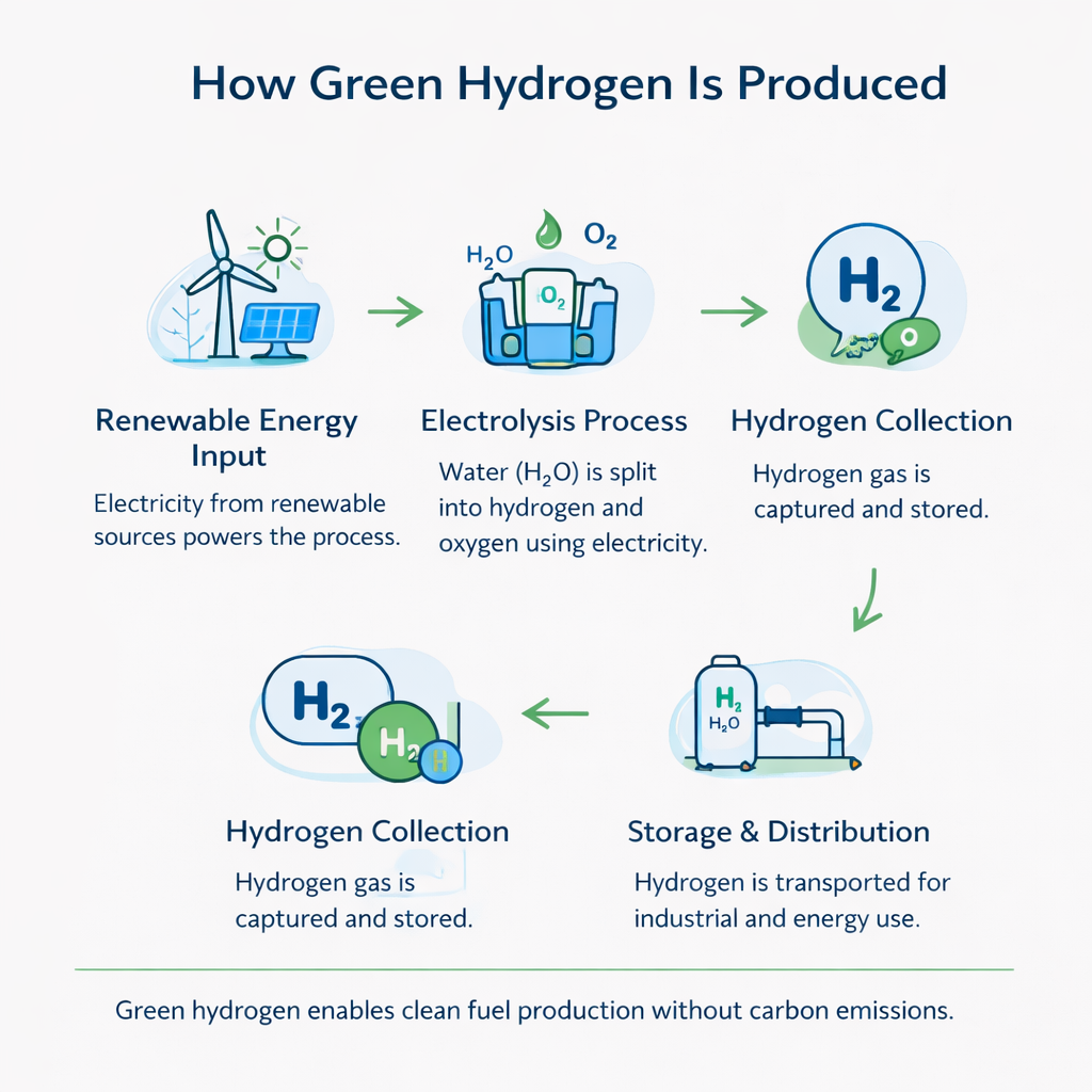 This makes green hydrogen a game-changer. Unlike solar and wind, that produce electricity, hydrogen is an energy carrier — it can be stored, transported, and used across sectors that are difficult to electrify directly.
