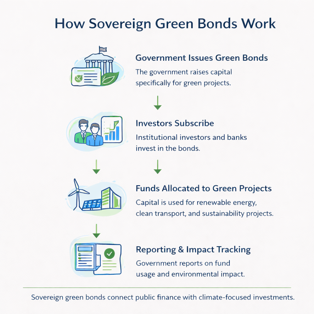 Sovereign green bonds (SGBs) are debt instruments issued by the government to finance environmentally sustainable public expenditure. While over 40 countries have issued such bonds globally, yet India’s approach is distinctive. The country has focused on strategic sectoral priorities while deliberately building a domestic green bond market. As noted by the Center on Global Energy Policy, Columbia University, India’s issuance supports its broader decarbonization and energy-transition agenda.