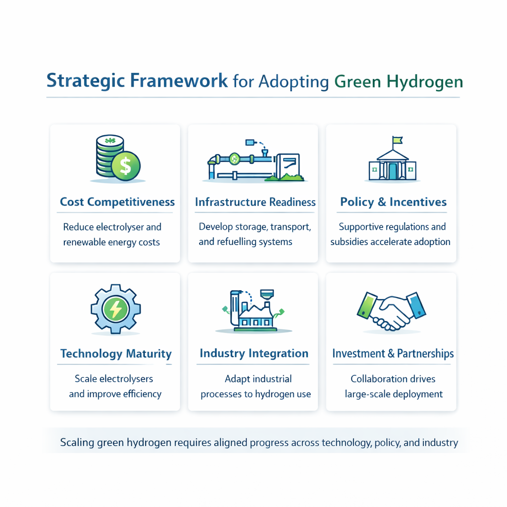 Green hydrogen offers strategic alignment with corporate net-zero ambitions. Industries are increasingly aware that Scope 1 and Scope 2 emissions reduction alone is insufficient. Long-term decarbonization means rethinking fuel choices, feedstocks, value chains, and carbon markets.