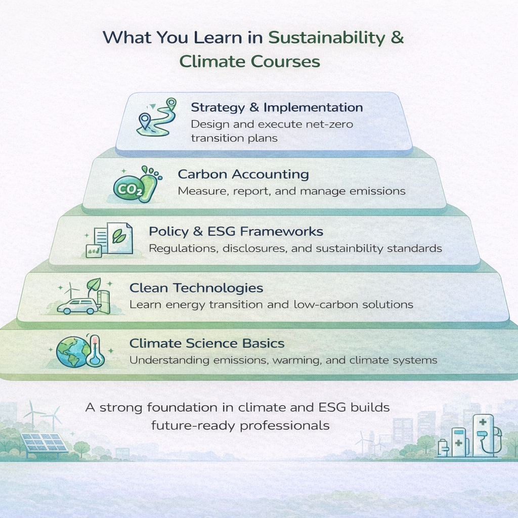 Green bonds, ESG funds, and climate-related disclosures are transforming financial markets. Courses prepare professionals to evaluate investment risks and opportunities through a sustainability lens.