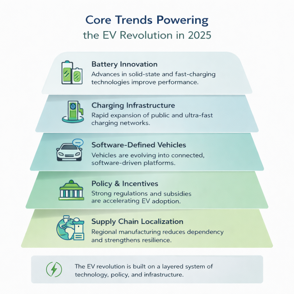 From next-gen battery technology breakthroughs to green charging infrastructure, this blog explores the most impactful EV technology trends shaping the e-mobility landscape in 2025.