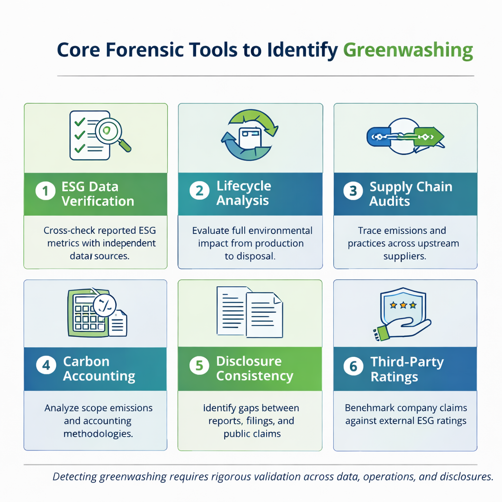 Additionally, carbon accounting—especially for Scope 3 emissions—remains a high-risk area. Forensic methods validate reported carbon footprints against established standards like the GHG Protocol, examining whether companies fully disclose indirect emissions from supply chains, product use, and waste.